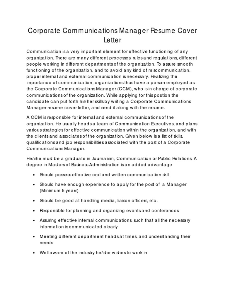 Corporate Communication Manager Resume Cover Letter Resume